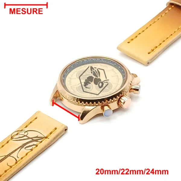 Afin de garantir un ajustement parfait, pensez à mesurer l’espace entre les cornes de votre montre avant de choisir la largeur du bracelet.