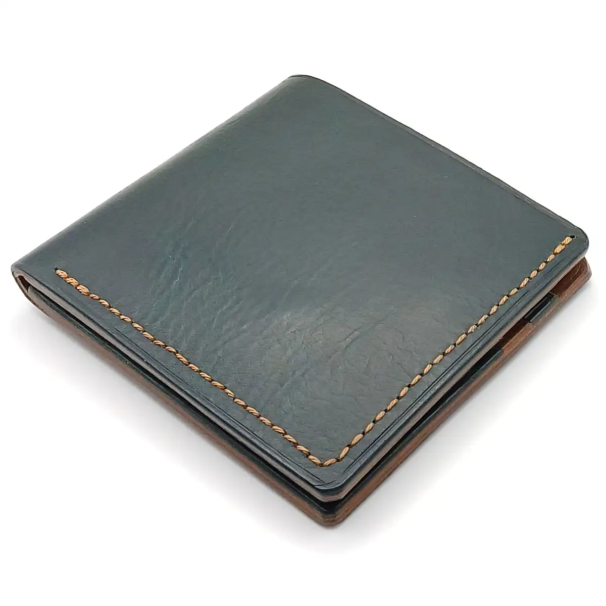 Caractéristiques – Cuir pull-up wax Aqua Marine | Conçu pour un usage quotidien durable et raffiné, ce portefeuille classique associe un cuir pull-up wax Aqua Marine aux nuances profondes, entre vert intense et bleu pétrole, à un cuir Pueblo Walnut, créant un contraste vivant qui se patine naturellement avec le temps. Compact et épuré, il permet de transporter cartes, billets et documents avec simplicité et sans encombrement. Fabriqué à la main, chaque élément est découpé, assemblé et cousu avec soin pour garantir durabilité et finitions harmonieuses. |